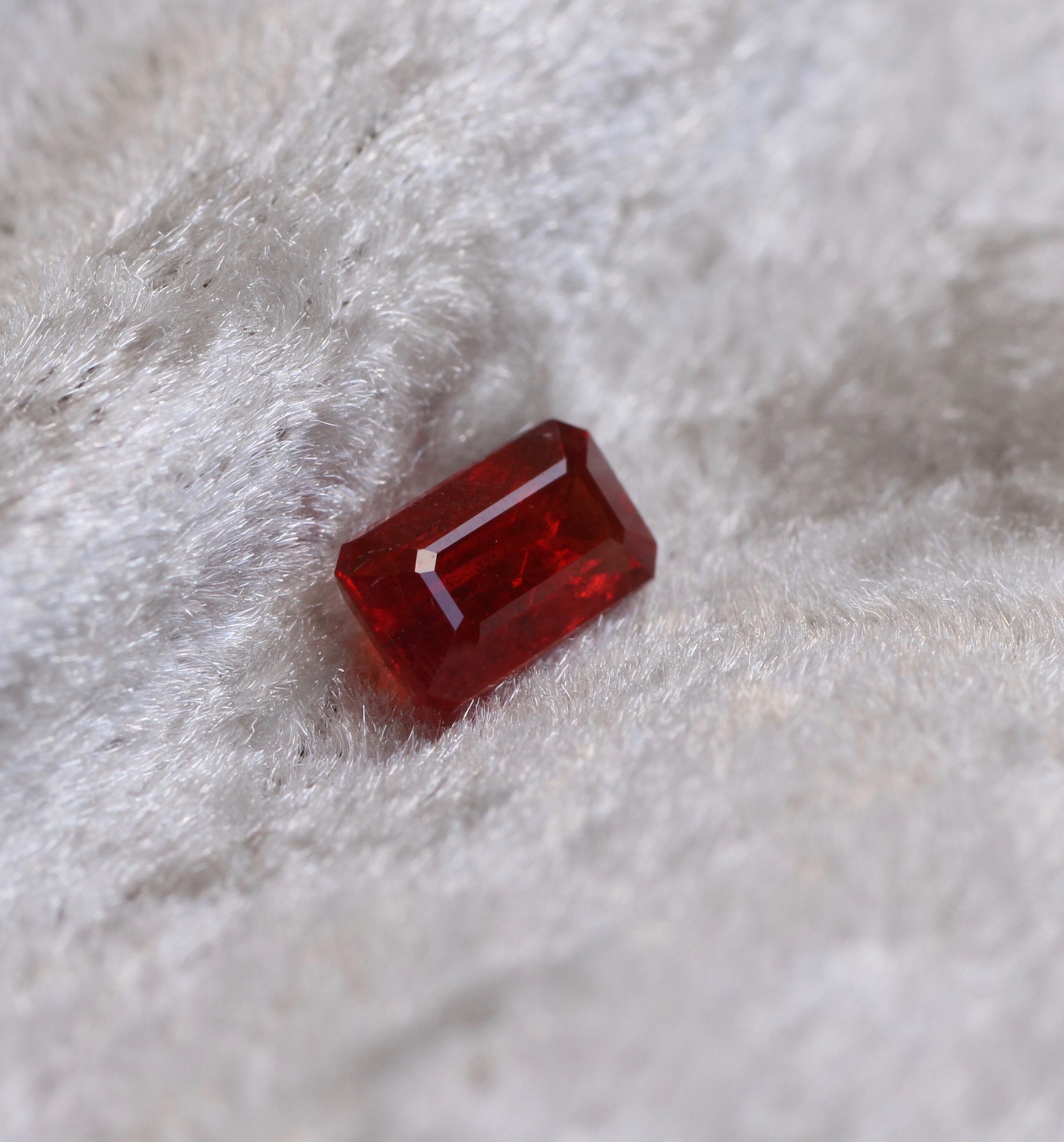 アンティーク朱色のレクタングルサファイア 1.27ct