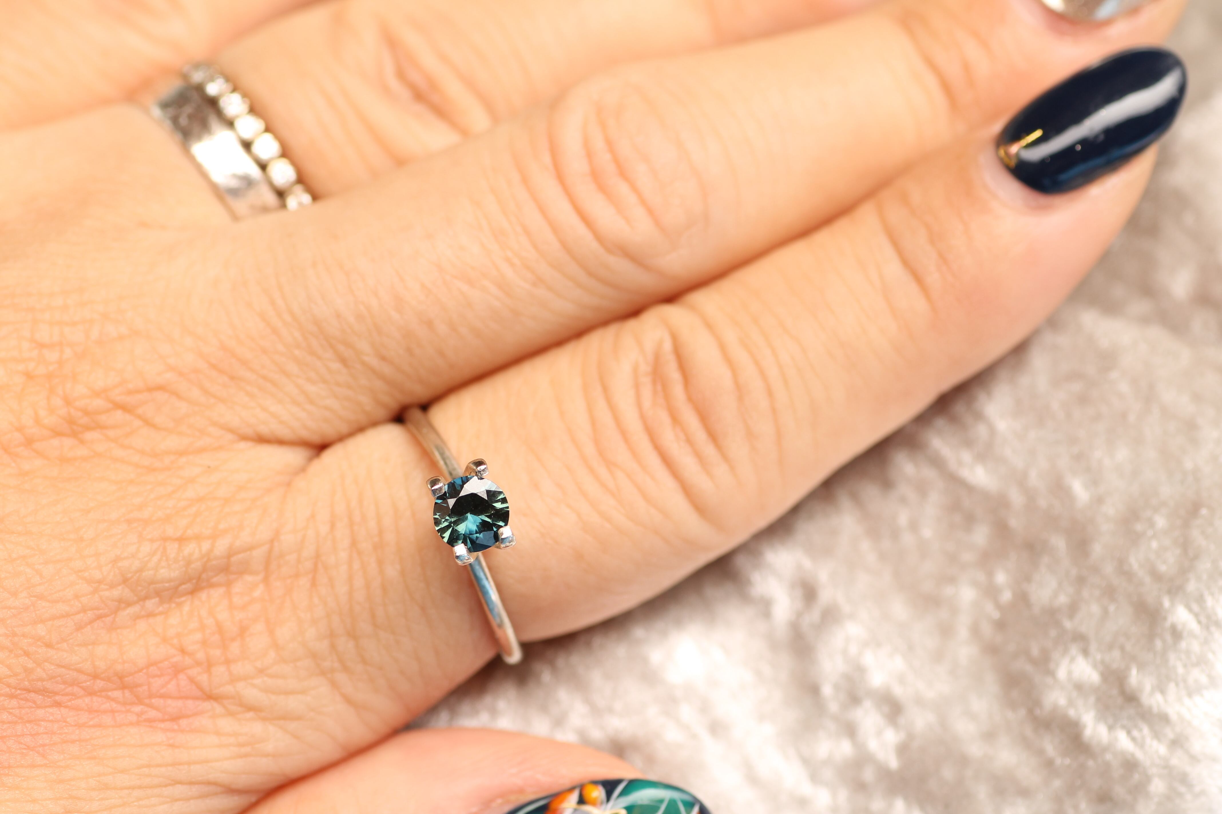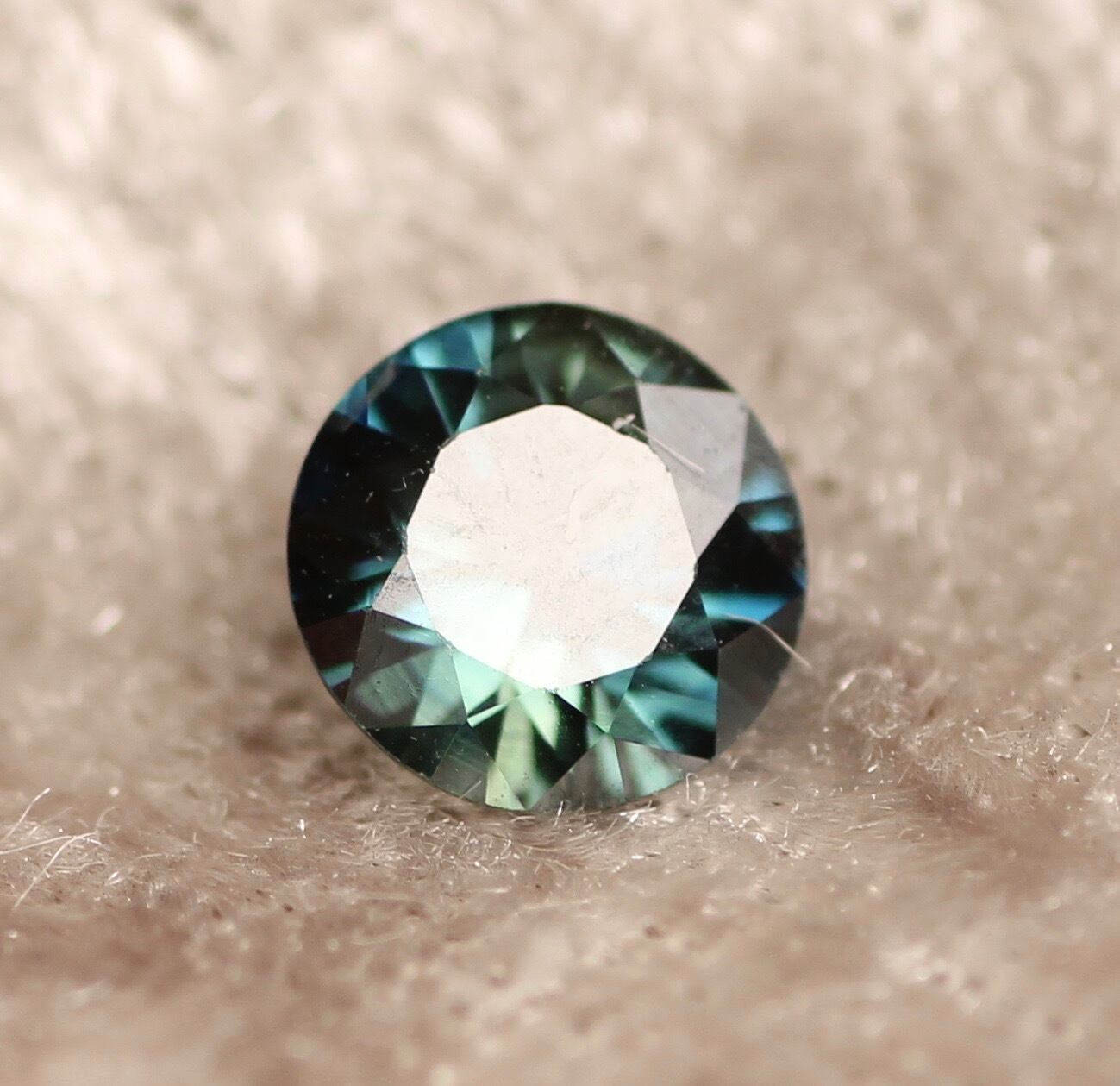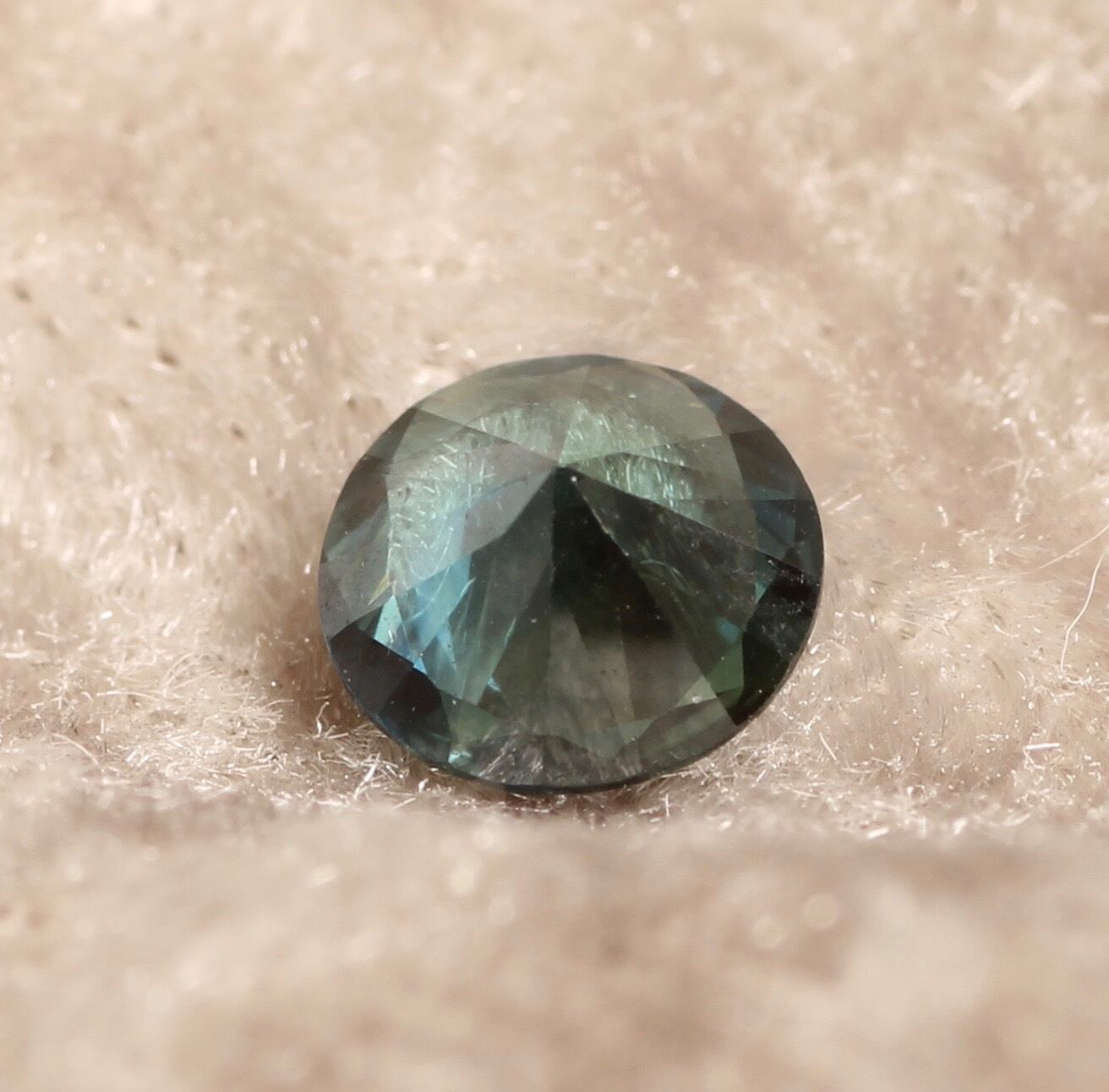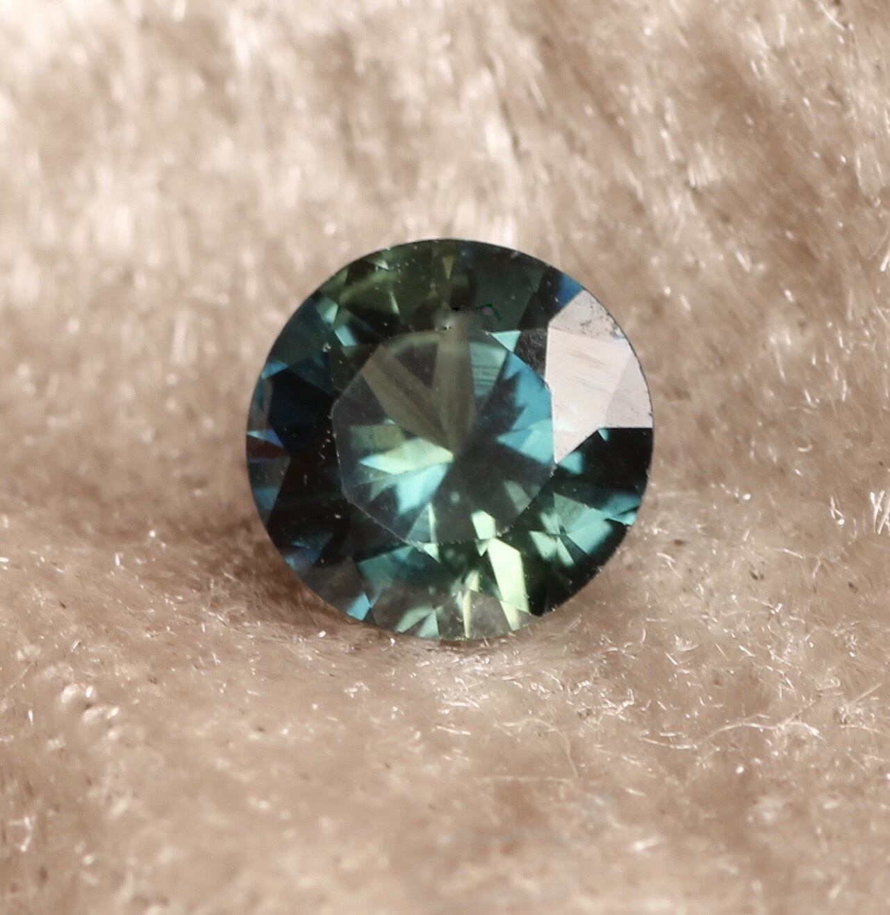 今度はラウンドの美しいブルーグリーンサファイアを