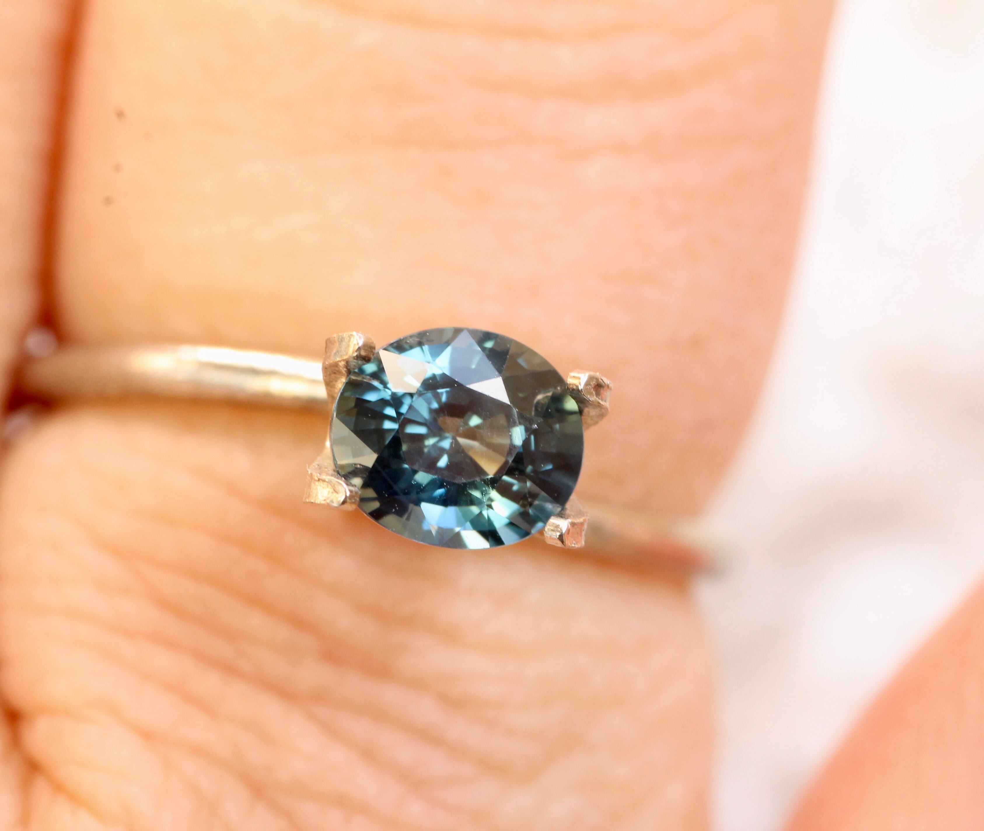 私はこのブルーグリーン系とニュアンスブルーのサファイア、スピネルと