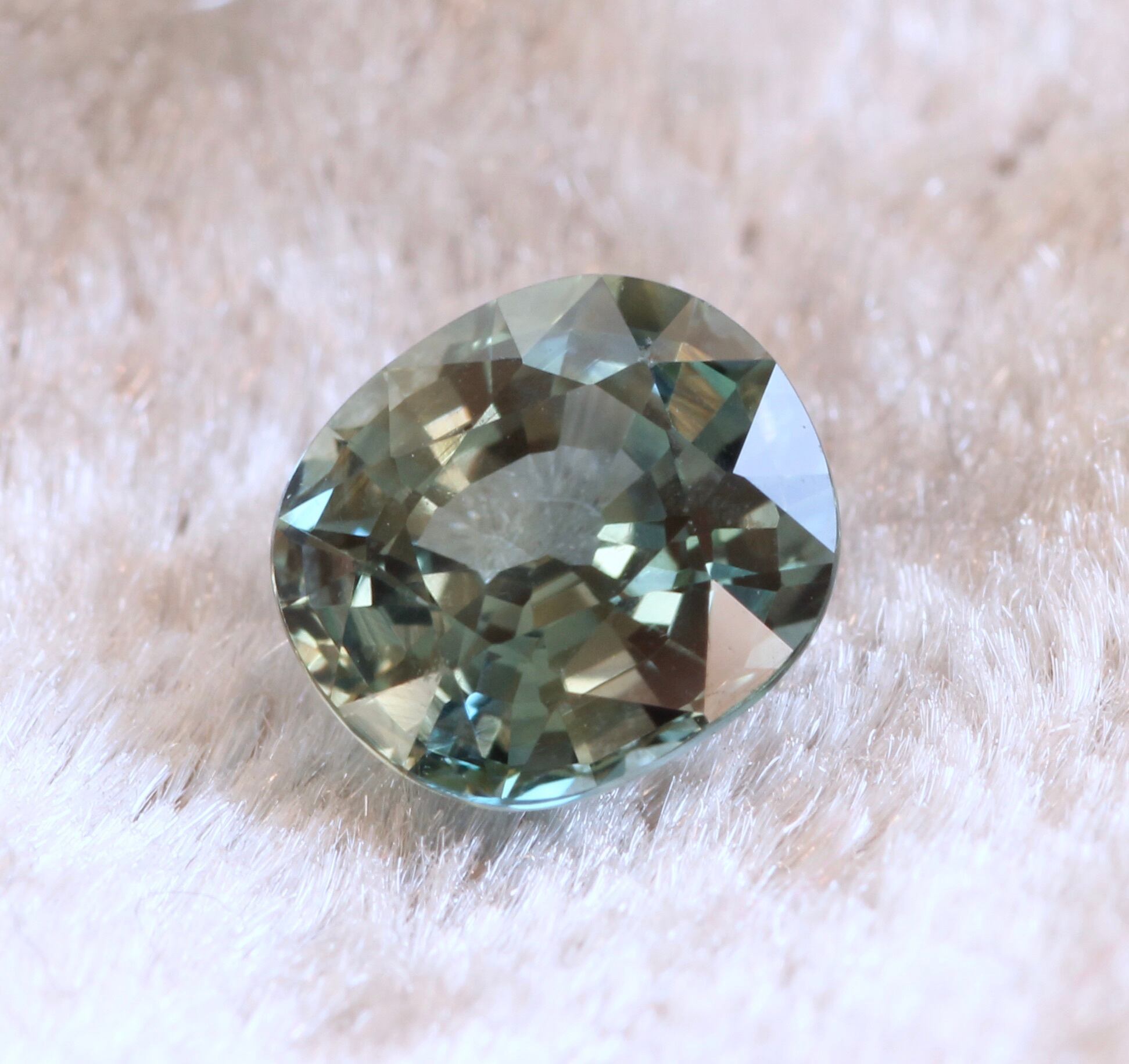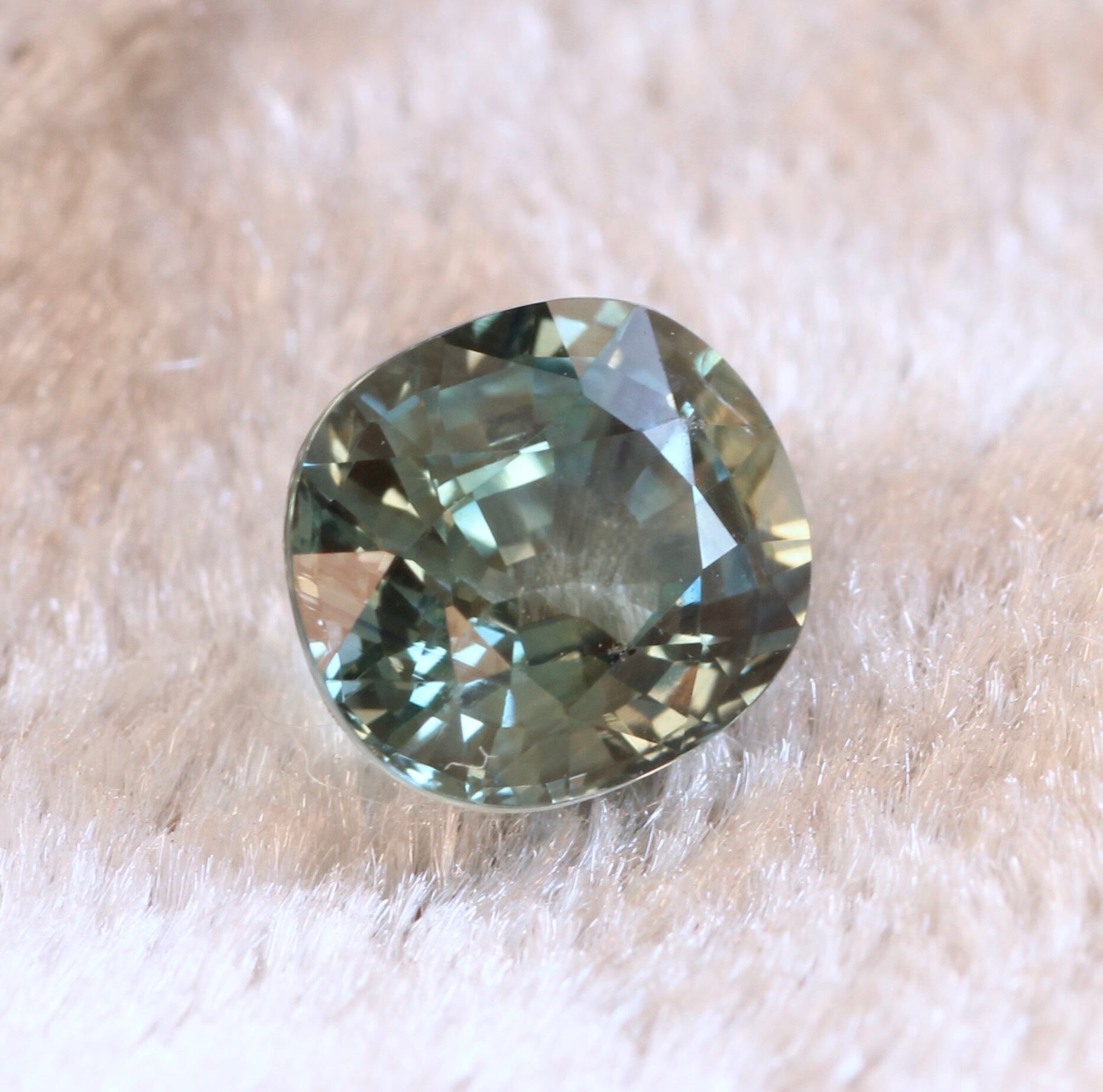 ブルーグリーンサファイア(タイ産、加熱) 1.24ct 6.4×5.7×3.9mm