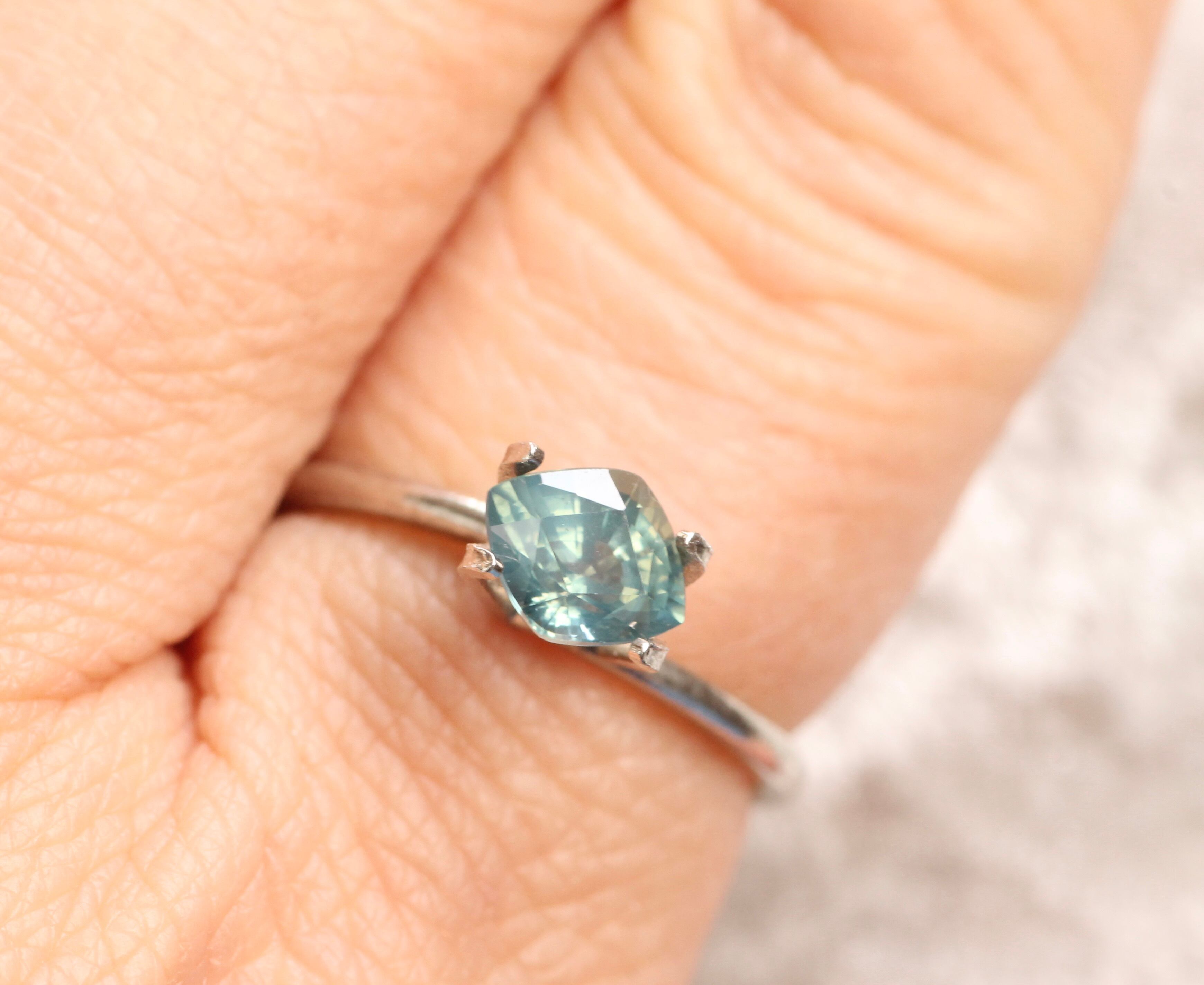 ゆるいひし形、優しい色・・・非加熱ブルーグリーンサファイア 1.03ct
